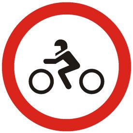 Accesul interzis motocicletelor, C4, indicator de interzicere, Protrafic, 600 mm, folie reflectorizanta clasa 1, otel vopsit, indicator de interzicere sau restrictie se amplaseaza la intrarea pe drumurile publice pe care accesul motocicletelor este interzis.