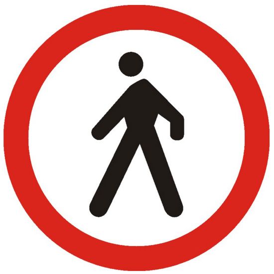 Accesul interzis pietonilor, C10, indicator de interzicere, Protrafic, 600 mm, folie reflectorizanta clasa 1, otel vopsit, indicator de interzicere sau restrictie interzice accesul pietonilor pe sectorul de drum public pe care este amplasat. Daca indicatorul se afla numai pe una dintre partile drumului, atunci circulatia pietonilor este interzisa numai pe acea parte. Pentru a se interzice accesul pietonilor pe ambele sensuri, se vor instala doua indicatoare, cate unul pe fiecare parte.