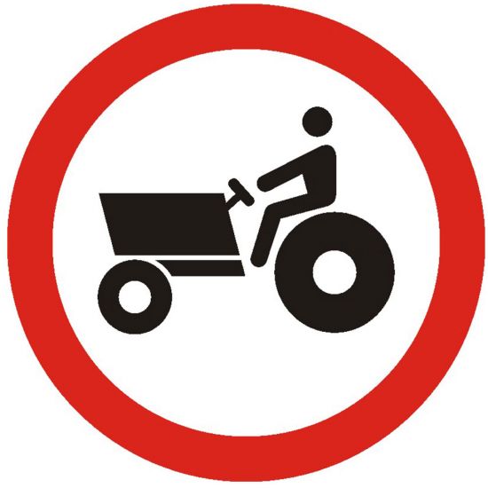 Accesul interzis tractoarelor si masinilor auto propulsate pentru lucrari, C13, indicator de interzicere, Protrafic, 600 mm, folie reflectorizanta clasa 1, otel vopsit, indicator de interzicere sau restrictie poate fi intalnit in localitatile rurale, pe drumurile publice pe care accesul tractoarelor si masinilor autopropulsate pentru lucrari este interzis.