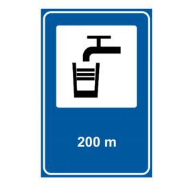 Acest indicator rutier îl informează pe conducătorul auto că, la 200 metri de indicator există un loc special amenajat cu apă potabilă.