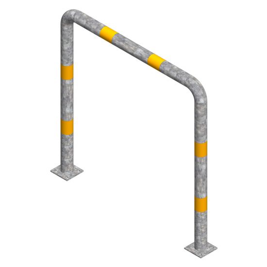 Protectii metalice / Aparatori protectie / Aparatoare de protectie metalica tip arc 1200x1200 mm diametru 76.1 mm, Nentra, zincat cu benzi galbene reflectorizante