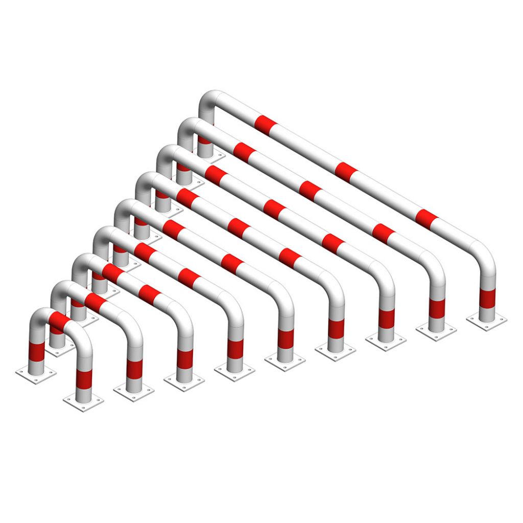 Aparatoare de protectie metalica tip arc 1800x400 mm diametru 76.1 mm, Nentra, alb cu benzi rosii reflectorizante
