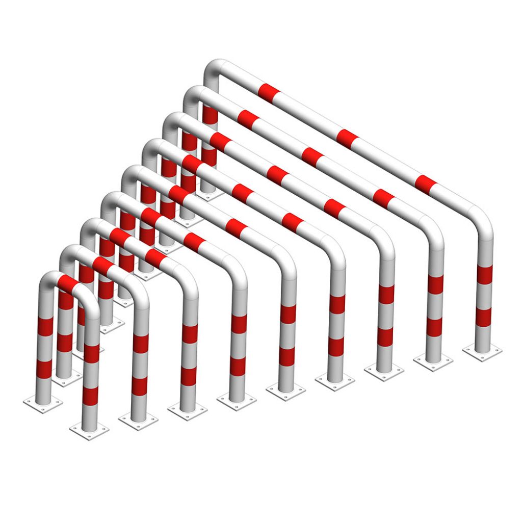 Aparatoare de protectie metalica tip arc 600x1000 mm diametru 76.1 mm, Nentra, alba cu benzi rosii reflectorizante