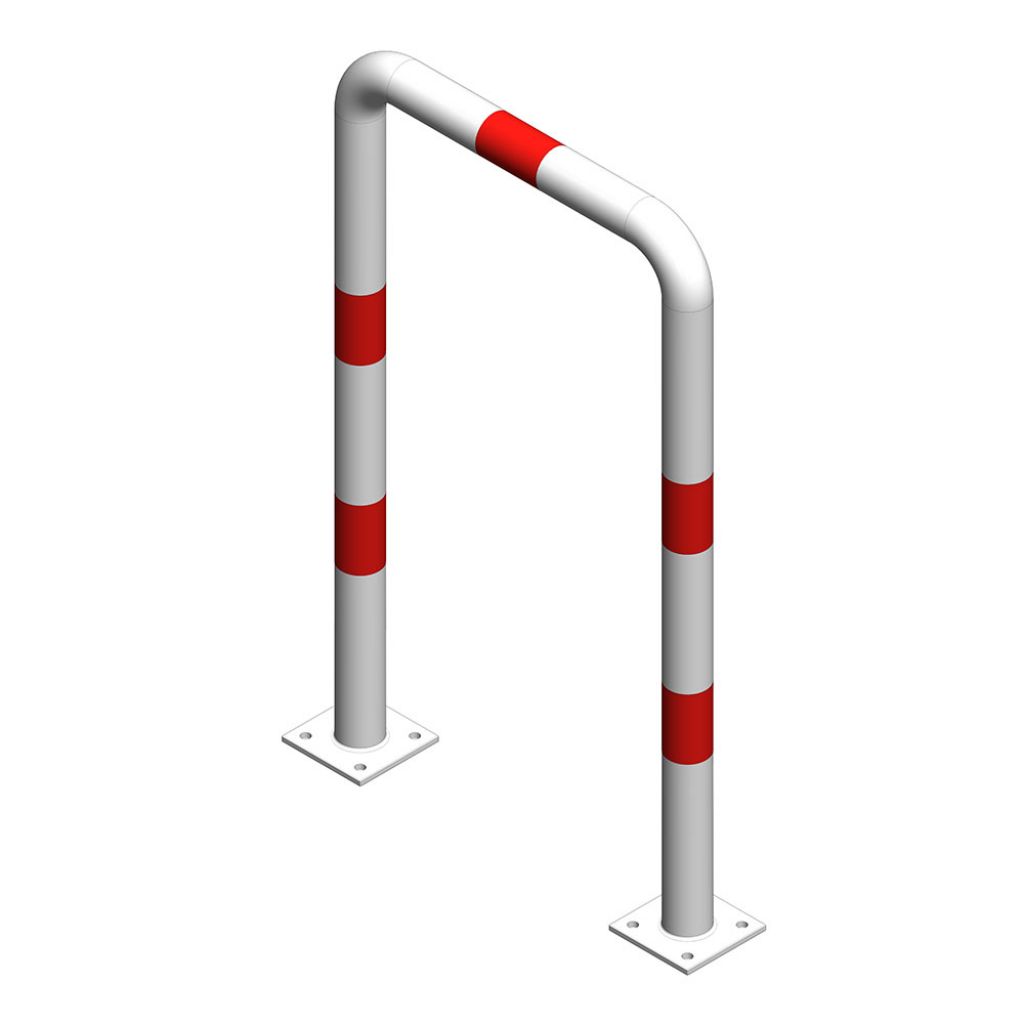 Aparatoare de protectie metalica tip arc 600x1000 mm diametru 76.1 mm, Nentra, alba cu benzi rosii reflectorizante