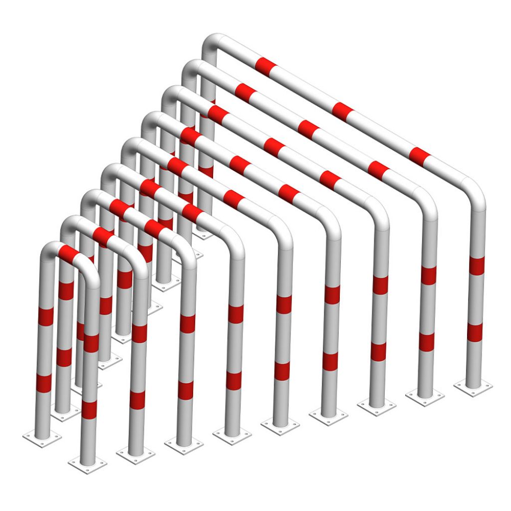 Protectii metalice / Aparatori protectie / Aparatoare de protectie metalica tip arc 600x1200 mm diametru 76.1 mm, Nentra, alb cu benzi rosii reflectorizante