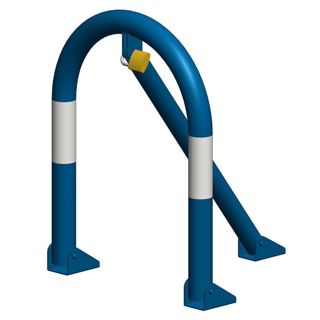 Blocator parcare tip arc Poarta Mini model BPP-03 albastru, 340x450 mm, lacat, dibluri, holsuruburi este special construit pentru blocarea locului de parcare.