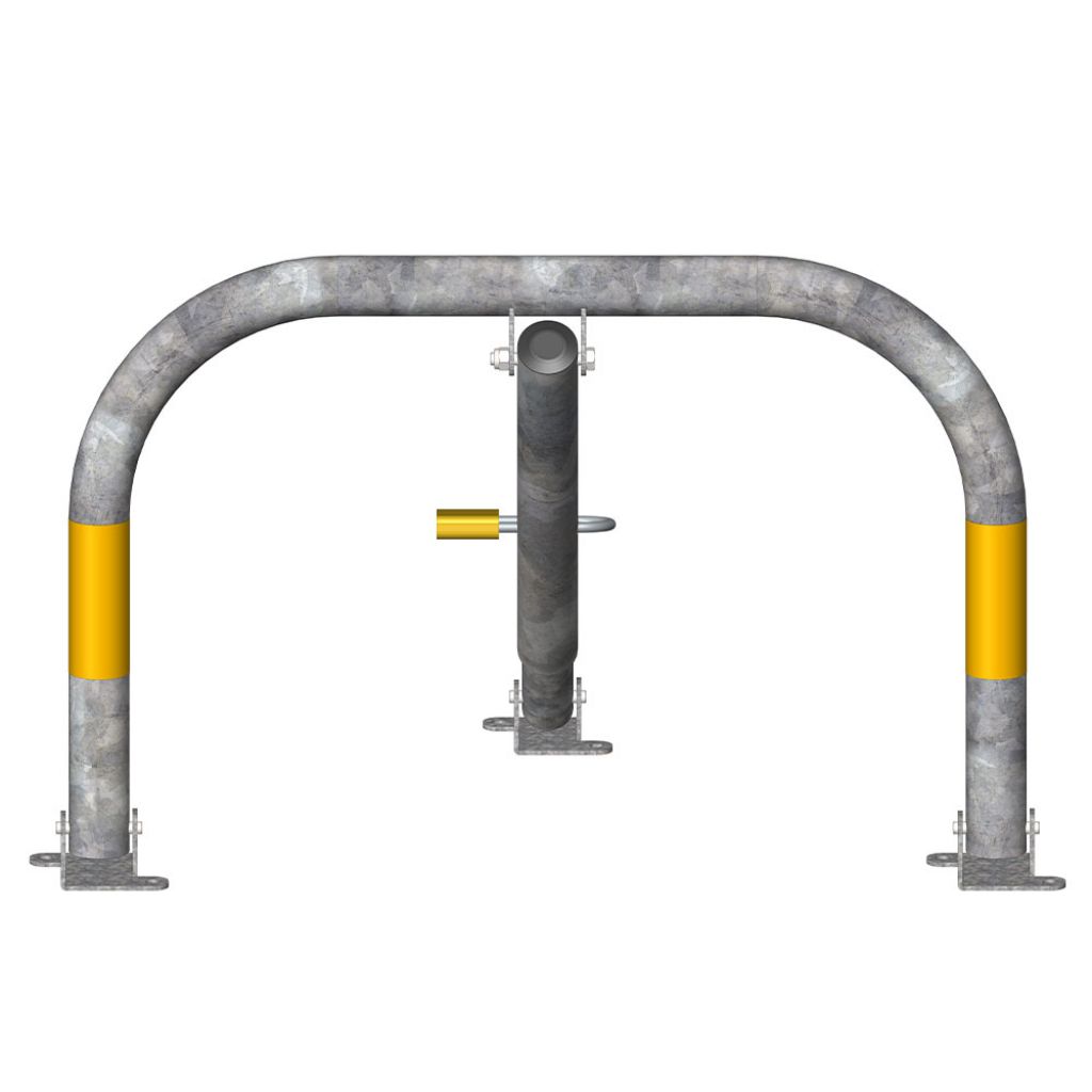 Blocator parcare tip arc Poarta model BPP-01 zincat, 600x400 mm, piston, lacat, dibluri, holsuruburi este un sistem folosit pentru blocarea accesului pe locurilor de parcare.