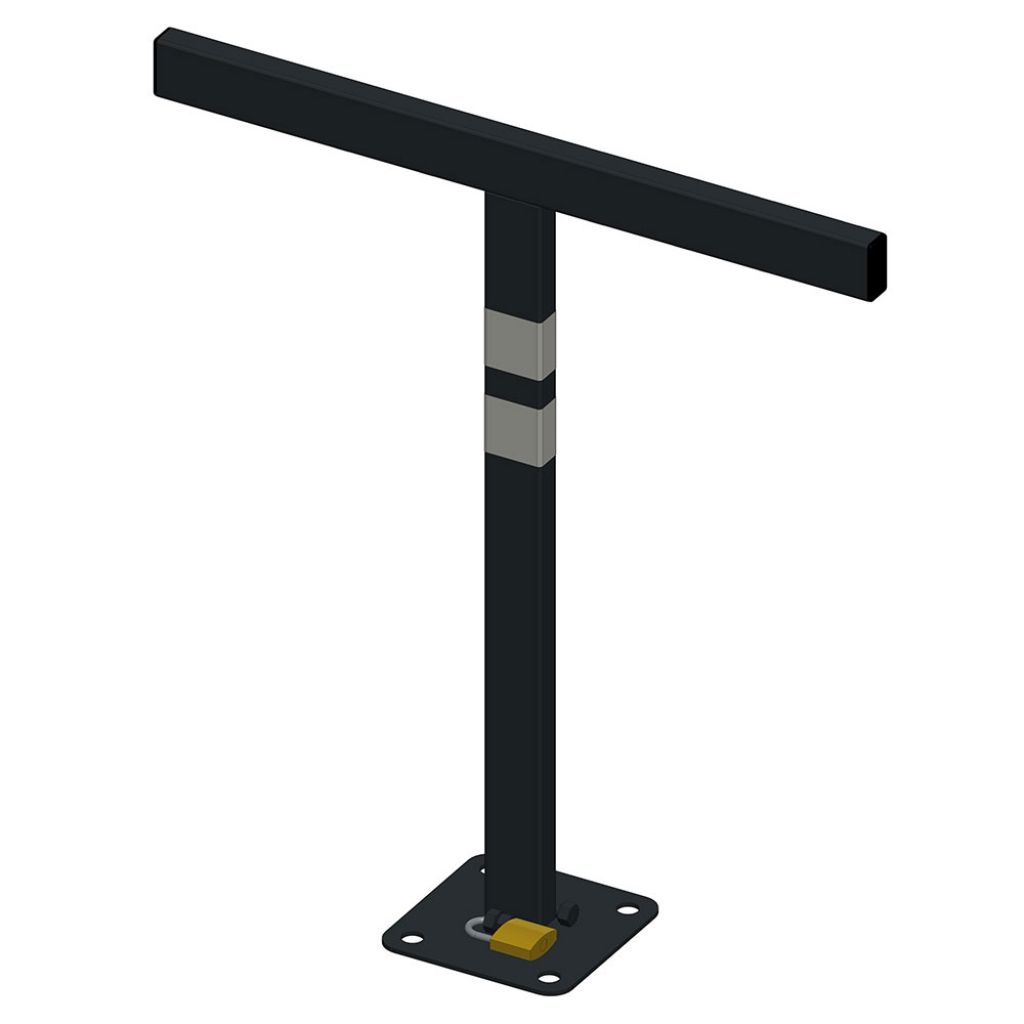 Blocator parcare tip T TeCO model BPT-02 gri, 500x550 mm, lacat, dibluri, holsuruburi, economic este usor de instalat, iar utilizarea lui va face sa scapati de grija locului de parcare.