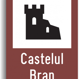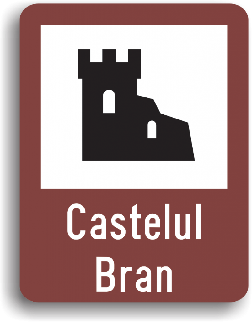 Acest indicator rutier de informare turistică, se întâlnește pe sectoarele de drum din apropierea unui castel sau o cetate.
