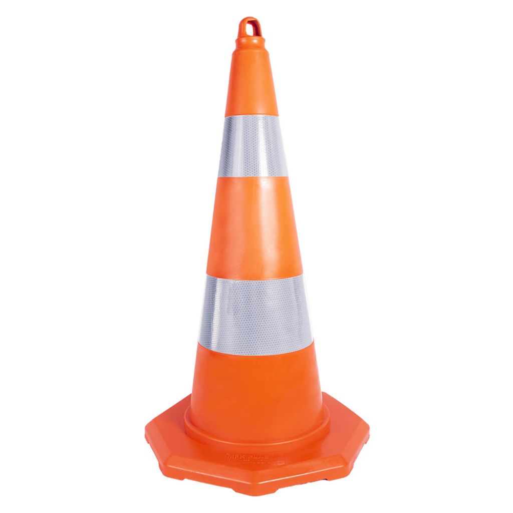 Con pentru trafic, Protrafic, MFK, model 3270, inaltime 750 mm, doua benzi reflectorizante, PVC, portocaliu se utilizeaza in amenajarile drumurilor, trotuarelor, zonelor de parcare, zonelor in care intrarea vehiculului este interzisa, ca separator de banda pe drumuri, lucrari de intretinere si reparatii temporare ale drumurilor, santiere etc.