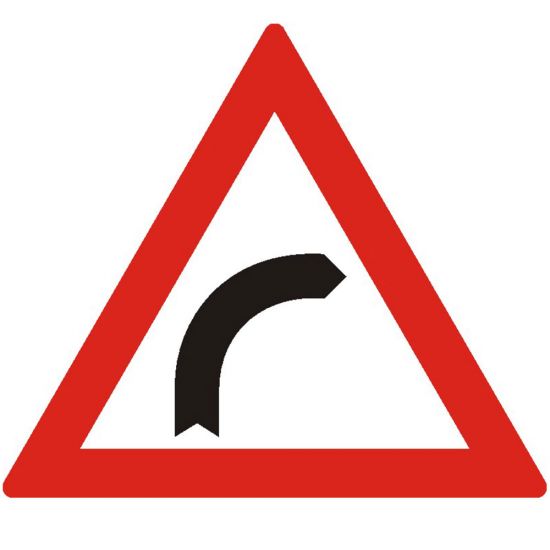 Curba la dreapta, A2, indicator de avertizare, Protrafic, 700 mm, folie reflectorizanta clasa 1, otel vopsit este amplasat la cel mult 200 m de o curbă la dreapta. Conducatorul trebuie să circule cu viteză redusă în curbe, iar dacă vizibilitatea este redusă, toate manevrele (depășirea, oprirea, staționarea, mersul înapoi, întoarcerea) sunt interzise.