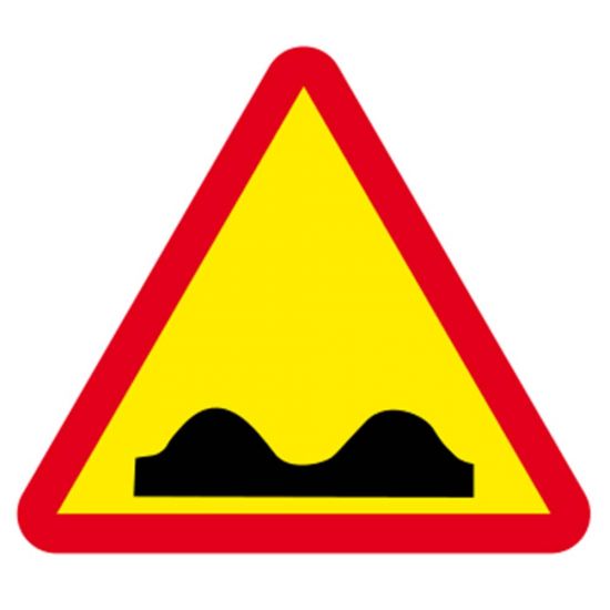 Aceste indicatoare rutiere, se întâlnesc de regulă pe sectoarele de drum pe care se execută lucrări. În acest caz, conducătorii auto sunt avertizați că urmează un sector de drum cu denivelări.