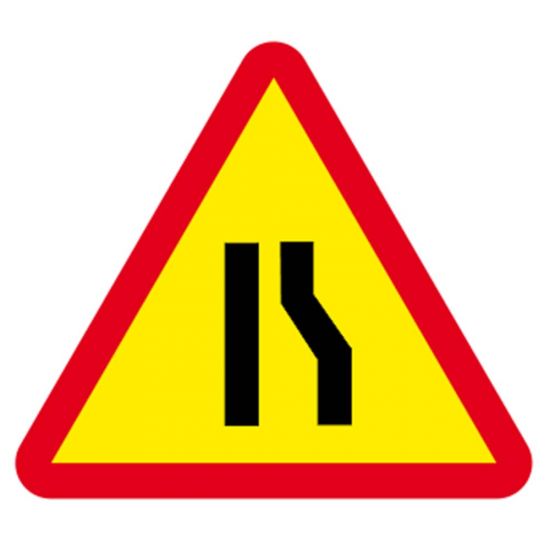 Acest indicator rutier se întâlnește pe sectoarele de drum unde se execută lucrări pe partea carosabilă. În acest caz, conducătorul auto este avertizat că urmează un sector cu drum îngustat pe partea dreaptă.