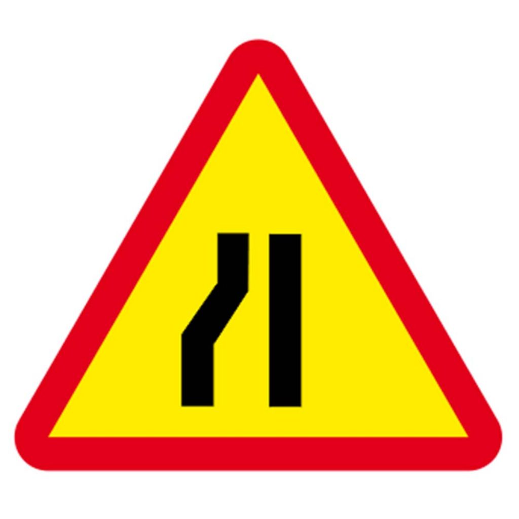 Acest indicator se întâlnește pe sectoarele de drum unde se execută lucrări pe partea carosabilă. În acest caz, conducătorul auto este avertizat că urmează un sector cu drum îngustat pe partea stângă.