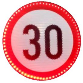 Indicator rutier cu leduri Limita Viteza este executat in variant pentru iluminat public 220 Vac pentru functionare pe timp de noapte. Ledurile indicatorului au intensitatea luminoasa super bright. Indicator rutier luminos Limita Viteza este inclus in pretul produsului. Indicator rutier luminos Limita Viteza contine indicatorul, acumulatorul si senzorul de lumina.