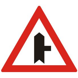Intersectie cu un drum fara prioritate, A36, indicator de avertizare, Protrafic, 700 mm, folie reflectorizanta clasa 1, otel vopsit, indicator de avertizare se instalează pe drumul cu prioritate in intersecţiile din afara localităţilor. Conducătorii de vehicule care întâlnesc indicatorul au prioritate de trecere iar cei care circulă pe drumul transversal vor întâlnii unul dintre indicatoarele: "Cedează trecerea" sau "Oprire". Oprirea, stationarea, mersul inapoi intoarcerea sunt interzise cu 25m inaintea intersectiei ori in zona de preselectie unde sunt aplicate marcaje cu linie continua. Depasirea si intoarcerea sunt permise in intersectie. Pe timpul noptii si in conditii de vizibilitate redusa la apropierea de intersectie, conducatorii de autovehicule sunt obligati sa schimbe alternant lumina de intalnire cu cea de drum.