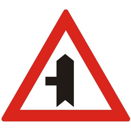 Intersectie cu un drum fara prioritate, A37, indicator de avertizare, Protrafic, 700 mm, folie reflectorizanta clasa 1, otel vopsit, indicator de avertizare se instalează pe drumul cu prioritate in intersecţiile din afara localităţilor. Conducătorii de vehicule care întâlnesc indicatorul au prioritate de trecere iar cei care circulă pe drumul transversal vor întâlnii unul dintre indicatoarele: "Cedează trecerea" sau "Oprire". Oprirea, stationarea, mersul inapoi intoarcerea sunt interzise cu 25m inaintea intersectiei ori in zona de preselectie unde sunt aplicate marcaje cu linie continua. Depasirea si intoarcerea sunt permise in intersectie. Pe timpul noptii si in conditii de vizibilitate redusa la apropierea de intersectie, conducatorii de autovehicule sunt obligati sa schimbe alternant lumina de intalnire cu cea de drum.