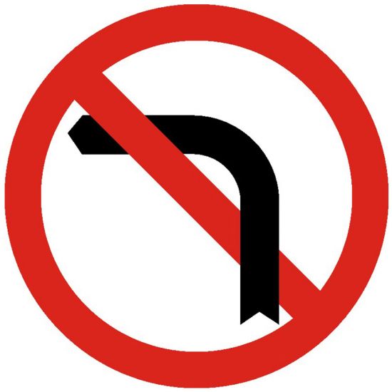 Interzis a vira la stanga, C24, indicator de interzicere, Protrafic, 600 mm, folie reflectorizanta clasa 1, otel vopsit, indicator de interzicere sau restrictie se afla instalat inaintea intersectiei in care se interzice virajul la stanga, deoarece pe drumul respectiv circulatia se desfasoara intr-un singur sens sau intrucat executarea virajului ar pune in pericol ceilalti participanti la trafic. Zona de actiune a indicatorului se termina dupa prima intersectie.