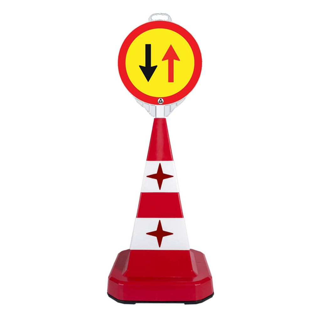 Kit indicator rutier mobil, stalp cu baza grea, indicator prioritate pentru circulatia din sens invers