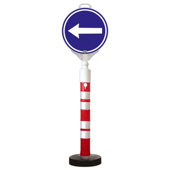 Kit indicator rutier mobil, Protrafic, stalp cu baza grea 1200 mm, greutate 12 kg, indicator obligatoriu stanga 280 mm, fata-verso.