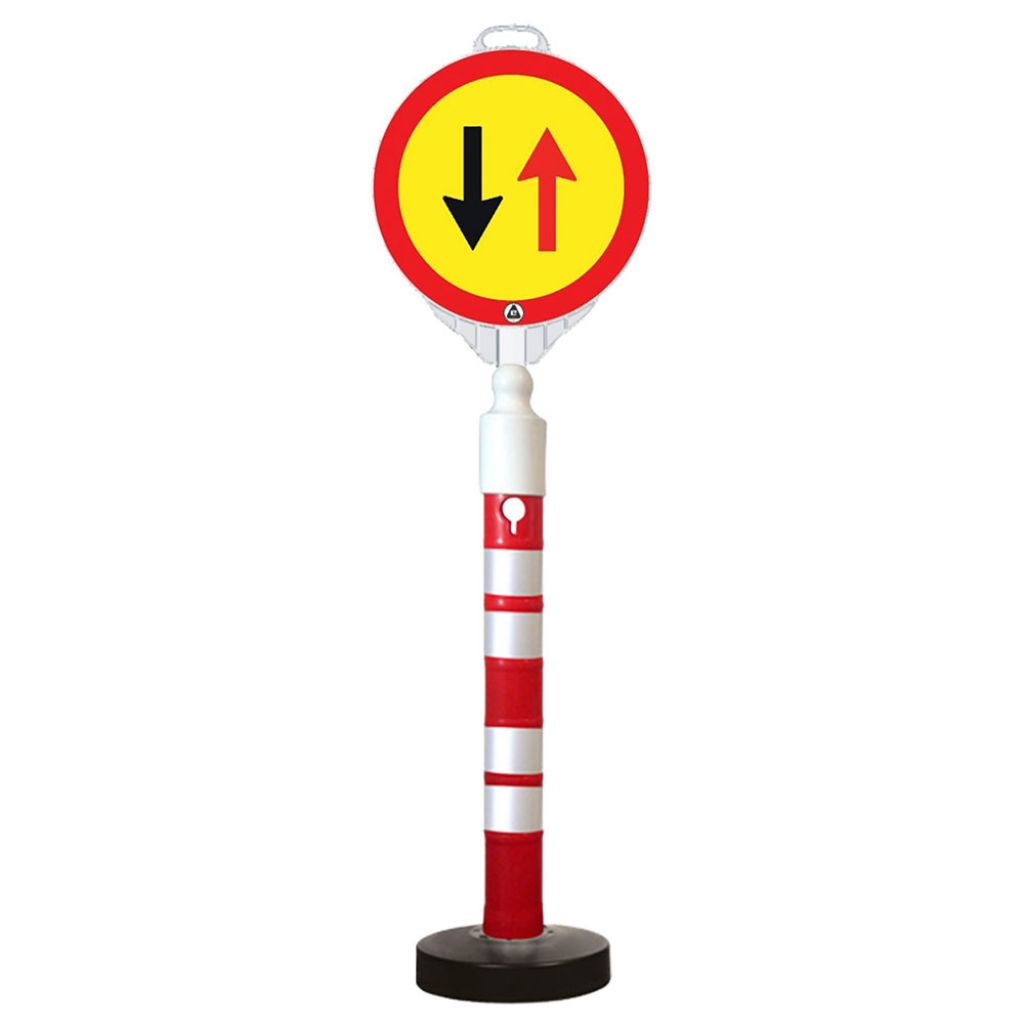 Kit indicator rutier mobil, stalp cu baza grea, indicator prioritate pentru circulatia din sens invers.