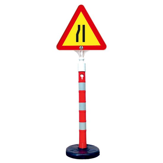 Kit indicator rutier mobil, stalp cu baza usoara, indicator drum ingustat pe partea stanga.