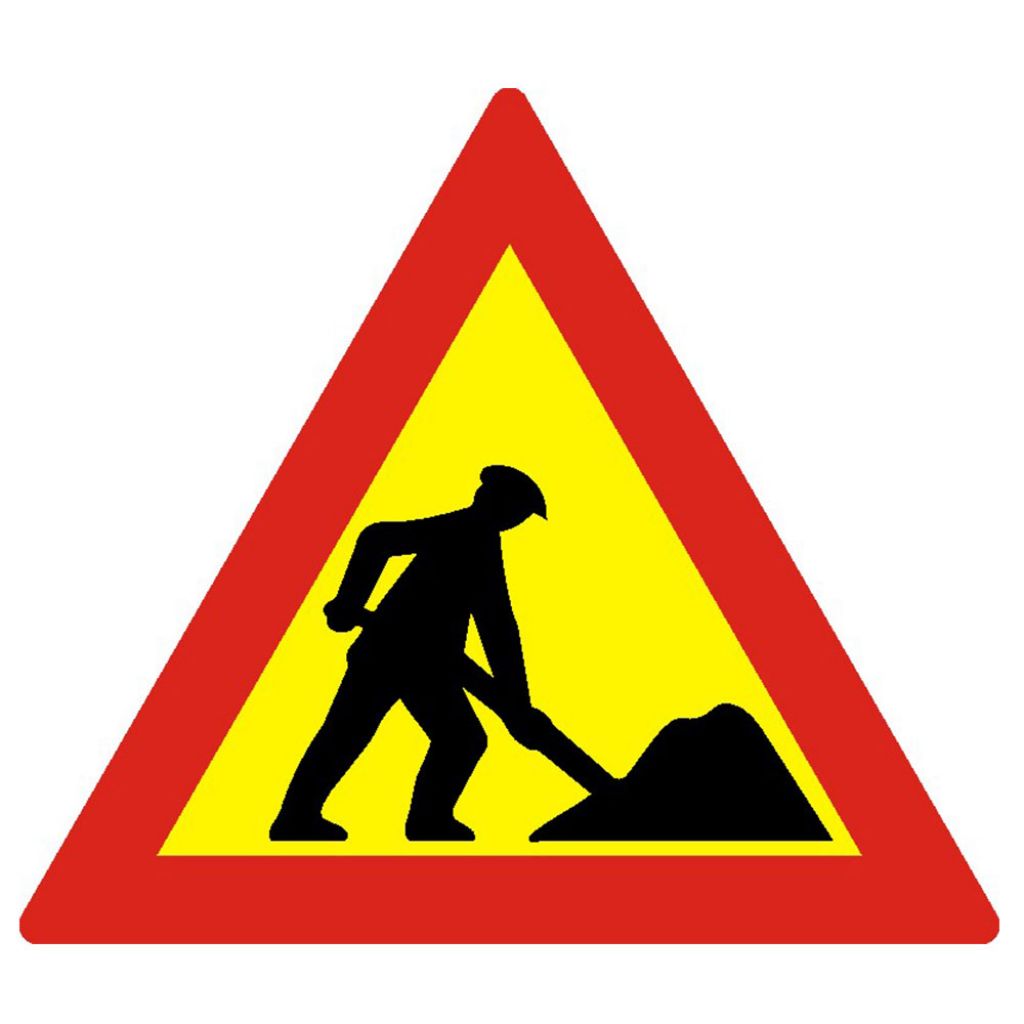 Lucrari, A27, indicator de avertizare, Protrafic, 700 mm, folie reflectorizanta clasa 1, otel vopsit, se instalează la o distanta de 20-200 m de sectorul de drum pe care se execută lucrări. Fondul de culoare galbena semnifică caracterul temporar al lucrării. La întâlnirea acestui indicator, Conducătorul auto este obligat să reducă viteza.