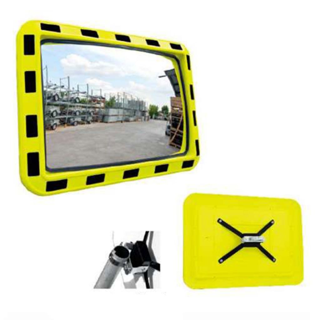 Oglinda rutiera industriala dreptunghiulara dimensiune 1000x800 mm cu bordura galben-negru este un produs de calitate.