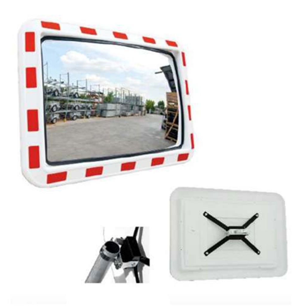 Oglinda rutiera dreptunghiulara dimensiune 600x400 mm cu bordura rosu-alb este fabricata din materiale plastice tratate pentru a asigura rezistenta la impact ridicat, intemperii, razele UV si praf.