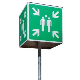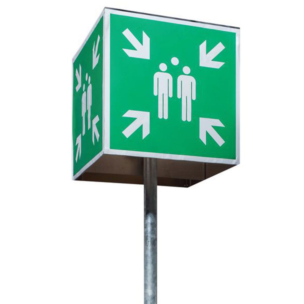 Panou indicator prisma triunghiulara loc de adunare in caz de urgenta 400x400x400 mm otel vopsit, Nentra, model PAZ 402, de exterior