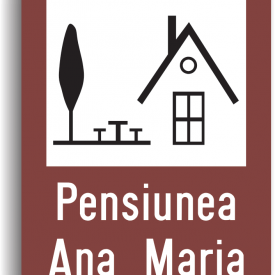 Aceste indicatoare rutiere de informare turistică, se întâlnesc de regulă în apropierea unor pensiuni agroturistice. În acest caz, conducătorul auto este informat că se află în apropierea pensiunii Ana Maria.