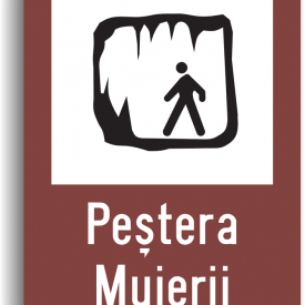 Acest indicator rutier de informare turistică, se întâlnește pe sectoarele de drum din apropierea unei peșteri.