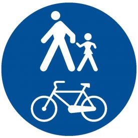 Pista comuna pentru pietoni si biciclete, D19, indicator de obligare, Protrafic, 600 mm, folie reflectorizanta clasa 1, otel vopsit, indicator de obligare se întâlneste pe partea carosabilă sau chiar pe trotuar, unde există o pistă comună pentru pietoni și biciclete. În zona respectivă este permisă doar circulația bicicletelor și a pietonilor.