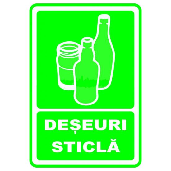 Placuta indicatoare de informare generala, deseuri sticla, Onsec, 200x300 mm, PVC, 3 mm