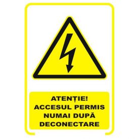 Semne si indicatoare / Placute de avertizare / Placuta indicatoare de securitate de avertizare, atentie, accesul permis numai dupa deconectare, Onsec, 200x300 mm, PVC, 3 mm