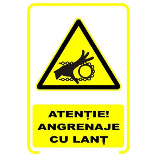 Semne si indicatoare / Placute de avertizare / Placuta indicatoare de securitate de avertizare, atentie, angrenaje cu lant, Onsec, 200x300 mm, PVC, 1 mm