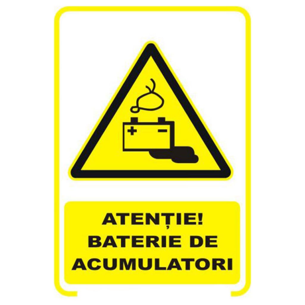 Placuta indicatoare de securitate de avertizare, atentie, baterie de acumulatori, Onsec, 200x300 mm, PVC, 1 mm