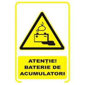 Semne si indicatoare / Placute de avertizare / Placuta indicatoare de securitate de avertizare, atentie, baterie de acumulatori, Onsec, 200x300 mm, PVC, 1 mm