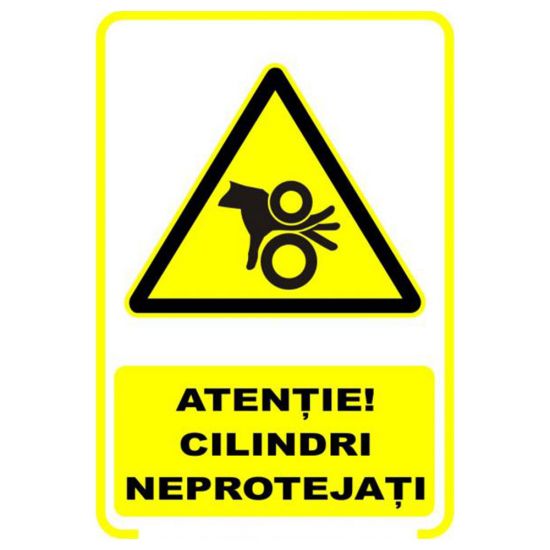 Semne si indicatoare / Placute de avertizare / Placuta indicatoare de securitate de avertizare, atentie, cilindri neprotejati, Onsec, 200x300 mm, PVC, 3 mm