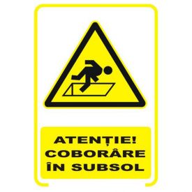 Semne si indicatoare / Placute de avertizare / Placuta indicatoare de securitate de avertizare, atentie, coborare in subsol, Onsec, 200x300 mm, PVC, 1 mm