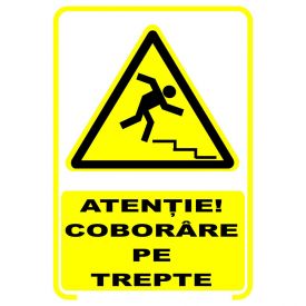 Semne si indicatoare / Placute de avertizare / Placuta indicatoare de securitate de avertizare, atentie, coborare pe trepte, Onsec, 200x300 mm, PVC, 3 mm