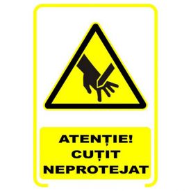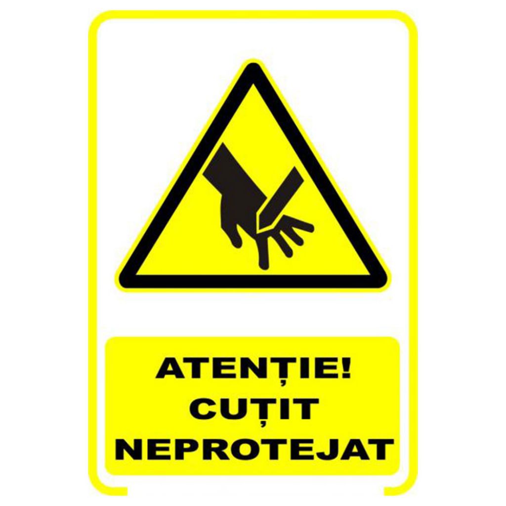 Semne si indicatoare / Placute de avertizare / Placuta indicatoare de securitate de avertizare, atentie, cutit neprotejat, Onsec, 200x300 mm, PVC, 1 mm