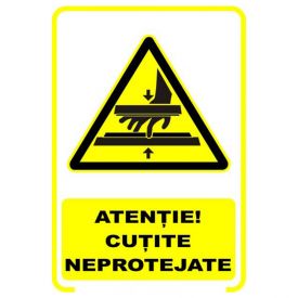 Semne si indicatoare / Placute de avertizare / Placuta indicatoare de securitate de avertizare, atentie, cutite neprotejate, Onsec, 200x300 mm, autocolant vinyl, 0.07 mm