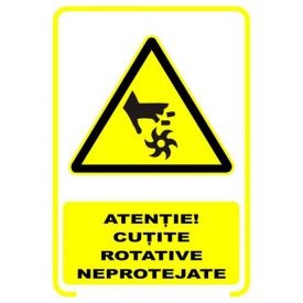 Semne si indicatoare / Placute de avertizare / Placuta indicatoare de securitate de avertizare, atentie, cutite rotative neprotejate, Onsec, 200x300 mm, PVC, 1 mm