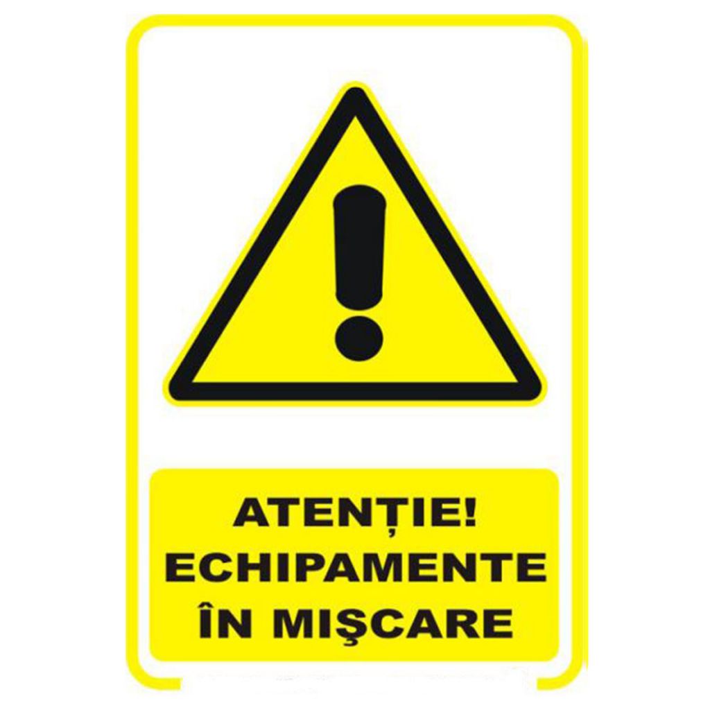 Semne si indicatoare / Placute de avertizare / Placuta indicatoare de securitate de avertizare, atentie, echpamente in miscare, Onsec, 200x300 mm, PVC, 3 mm