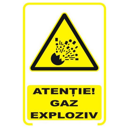 Semne si indicatoare / Placute de avertizare / Placuta indicatoare de securitate de avertizare, atentie, gaz exploziv, Onsec, 200x300 mm, PVC, 1 mm