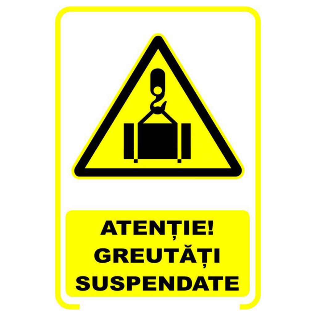 Semne si indicatoare / Placute de avertizare / Placuta indicatoare de securitate de avertizare, atentie, greutati suspendate, 200x300 mm, PVC, 3 mm