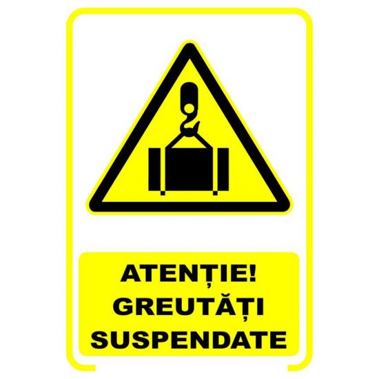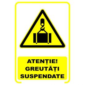 Placuta indicatoare de securitate de avertizare, atentie, greutati suspendate, Onsec, 200x300 mm, autocolant vinyl, 0.07 mm
