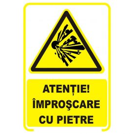 Semne si indicatoare / Placute de avertizare / Placuta indicatoare de securitate de avertizare, atentie, improscare cu pietre, Onsec, 200x300 mm, PVC, 1 mm