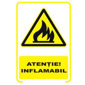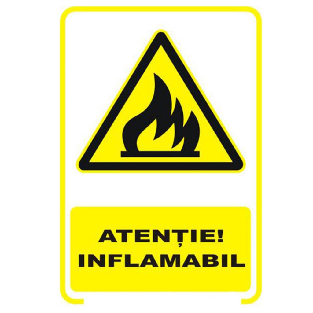 Semne si indicatoare / Placute de avertizare / Placuta indicatoare de securitate de avertizare, atentie, inflamabil, Onsec, 200x300 mm, PVC, 3 mm